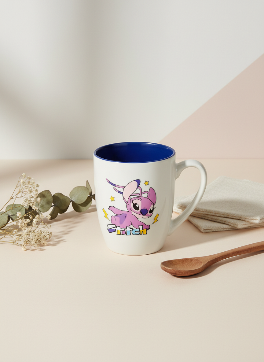 لو كنت بتدور على مج يجمع بين الشكل اللطيف والجودة العالية، فالنسخة الجديدة من مج ستيتش أنجل تعتبر واحدة من أجمل القطع المميزة في مجموعة المجات الكرتونية.